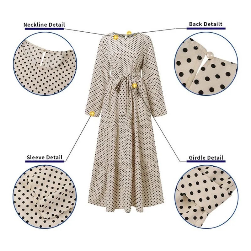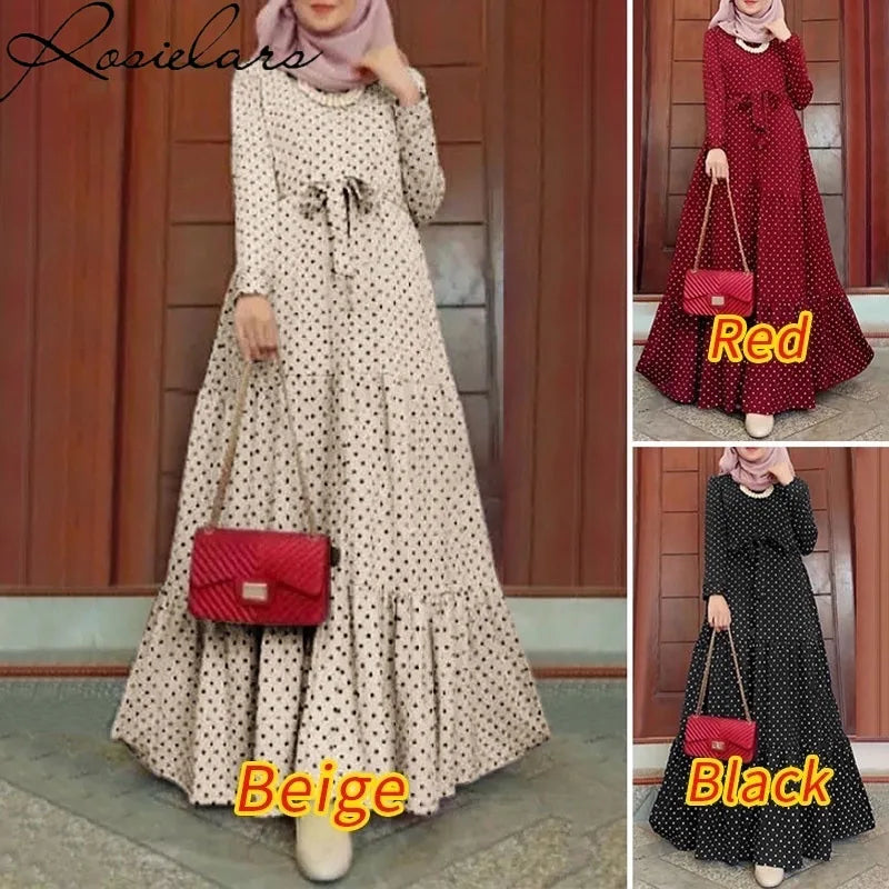 2024 New Muslim Moroccan Dot Print Long Sleeve Dress Party Plus Size 4XL 5XL Abaya Dubai Hijab Long Dresses Robe Elegante Femme