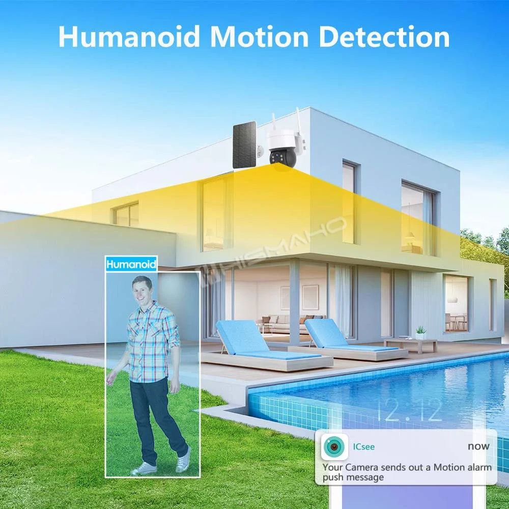 This security camera has Humanoid Motion Detection function, supports AI humanoid detection alarm, can accurately detect motion and send you notifications through APP.