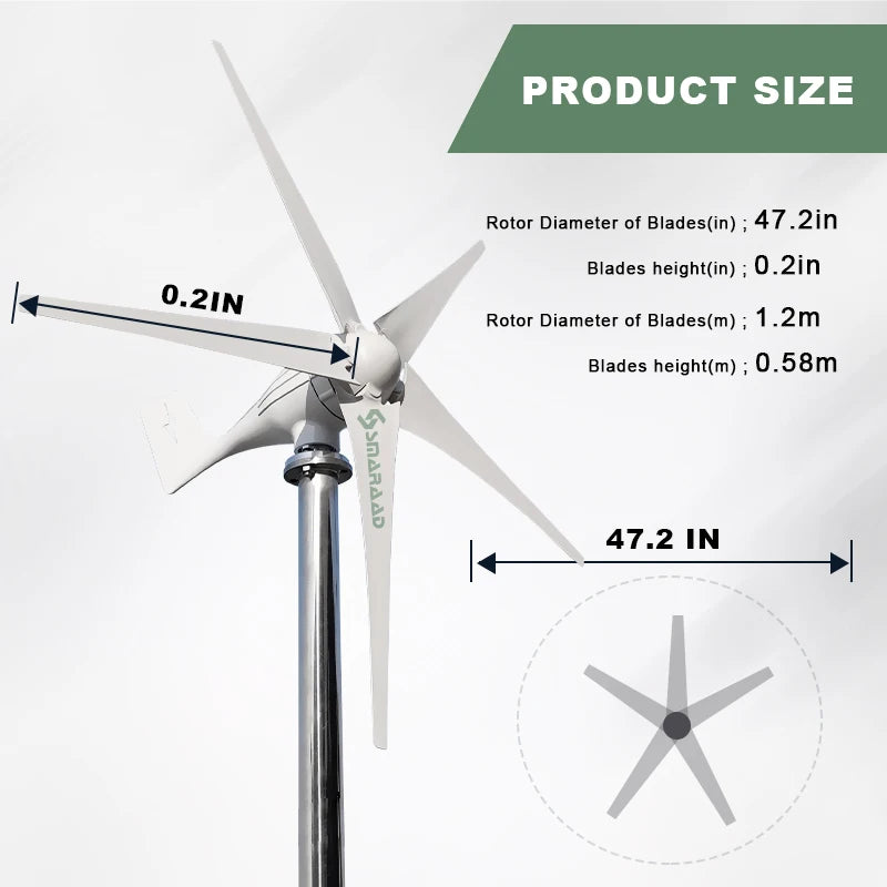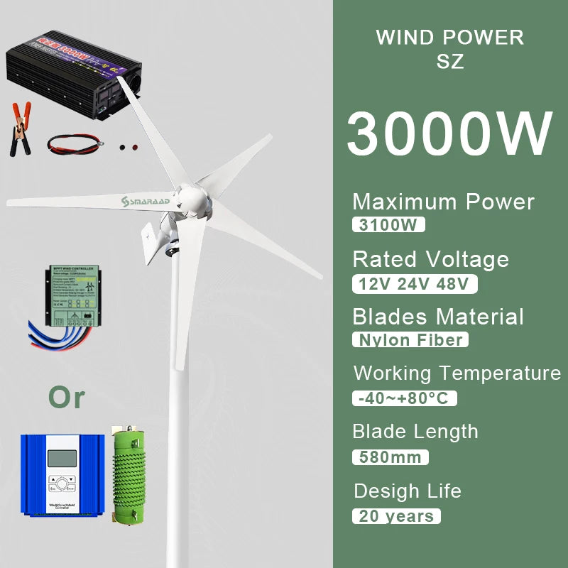 3000W Horizontal Wind Turbine Generator 12V 24V 48V Powerful Dynamo Free Energy With MPPT Off Grid System Homeuse Windmill
