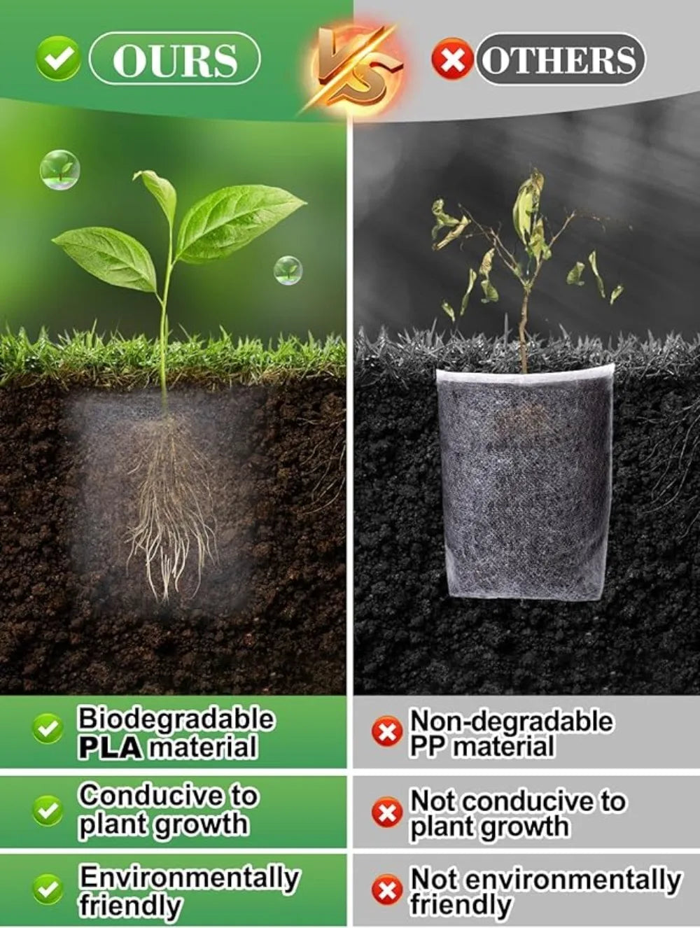 --Eco-friendly breathable and biodegradable non-woven material, no need to remove the bag when transplanting, improving the plants survival rate.
