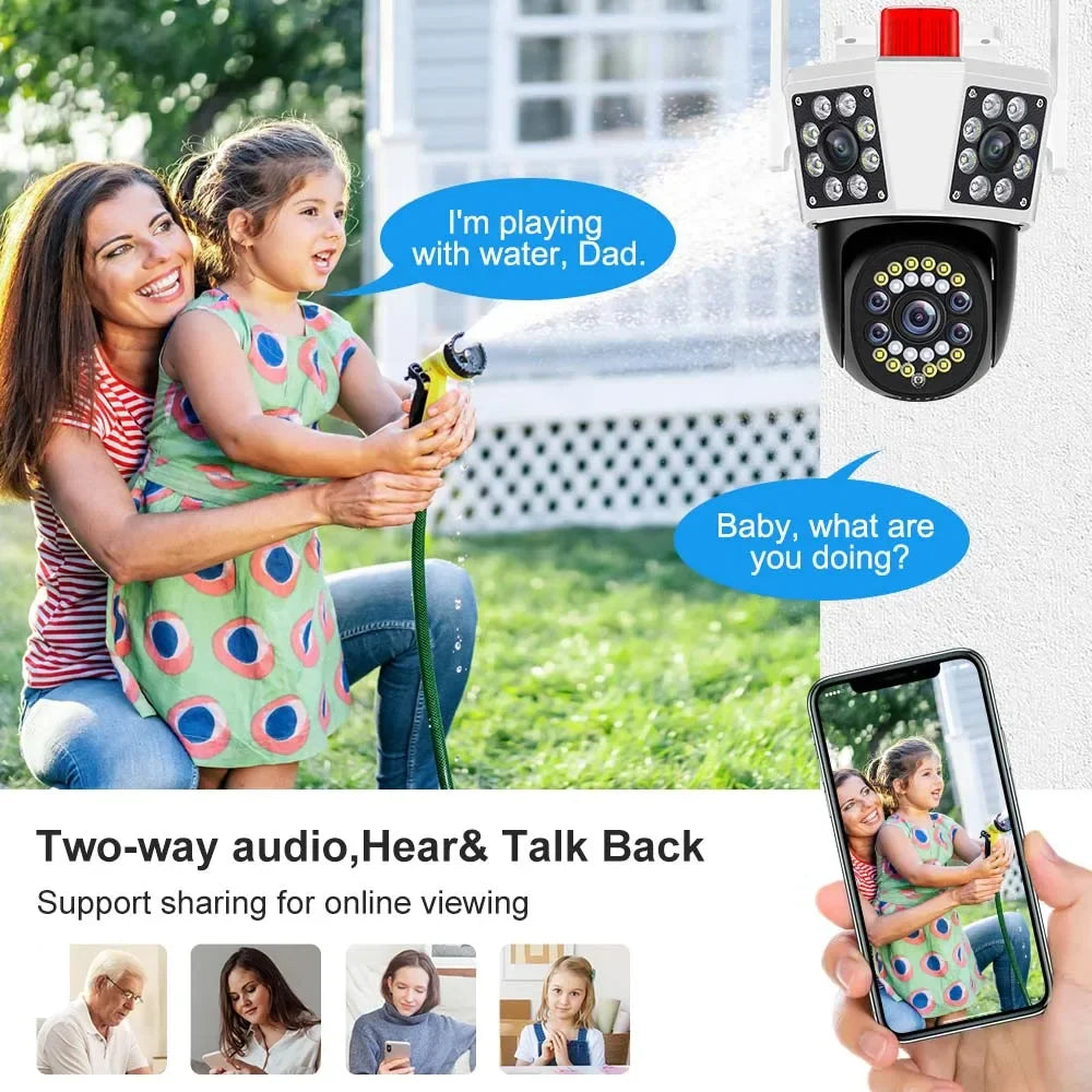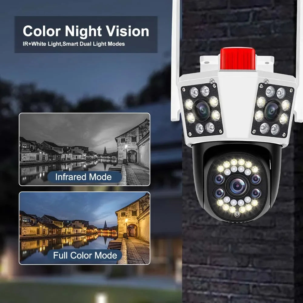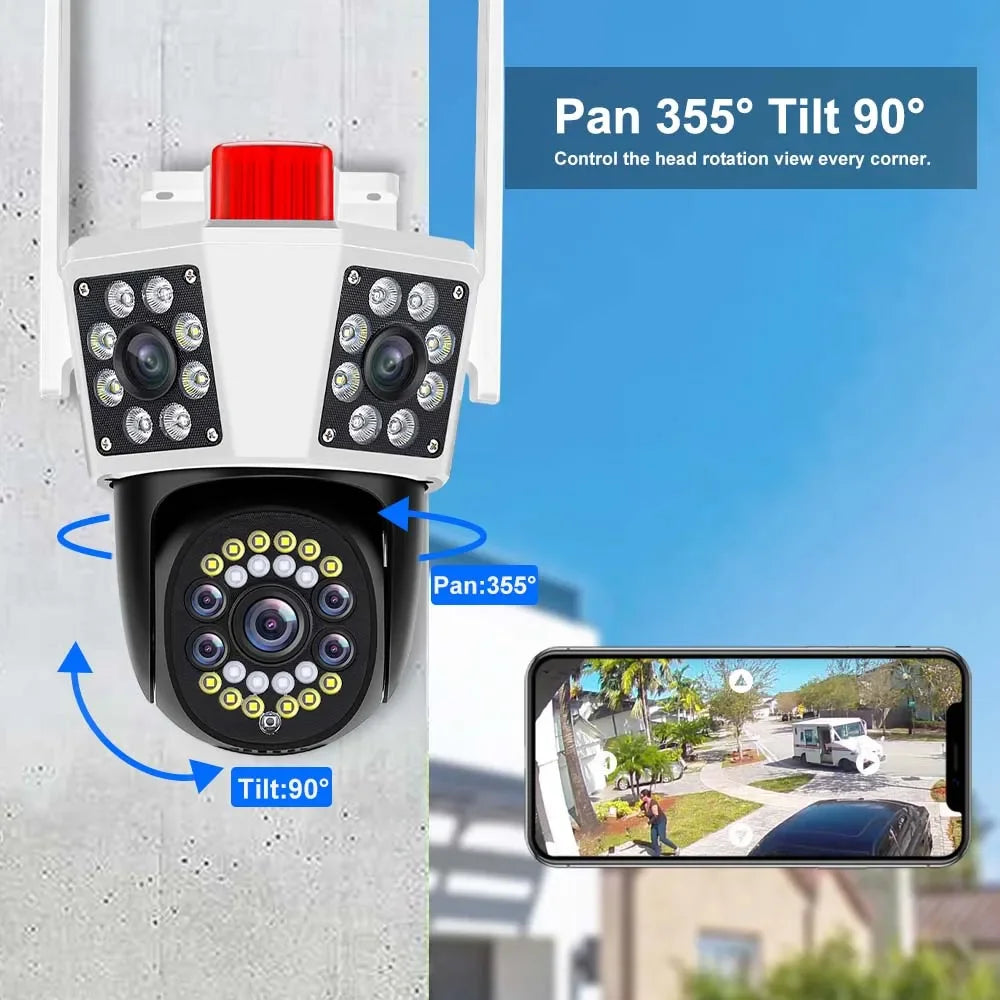 6K 12MP WiFi IP Camera Outdoor Waterproof Three Screen PTZ Security Cam 8X Zoom CCTV WiFi Video Surveillance Camera Ai Tracking
