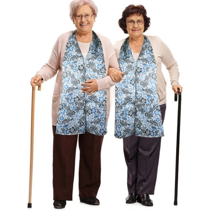 The adult bib scarf helps lovedor patient who needs and has chronic eating difficulties. It is great way for elders to eat without messing up their clothes.