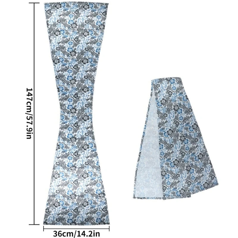 Measures about 14.2x57.9 inches, enough to cover your chest and knees. It can be quickly folded or rolled up to space saving and fit into bag for travel, restaurant visits, parties or any day out.