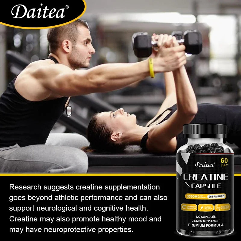 Count on Daitea's Creatine Capsules, a 100% vegetarian, gluten-free, soy-free, and keto-friendly creatine monohydrate supplement.