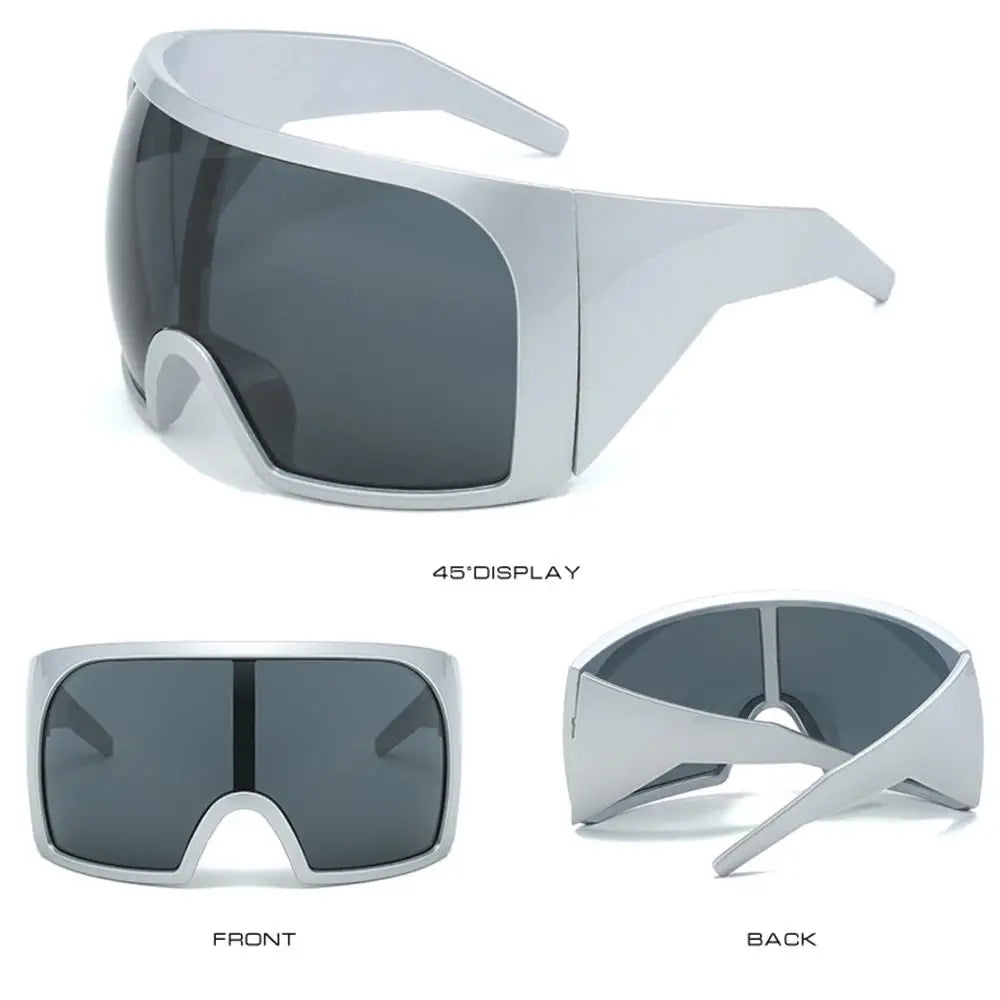 Futuristic Wrap Around Sunglasses Rave Curved Lens UV400 Protection 2000'S Eyewear Oversized Y2K Sun Glasses for Women & Men