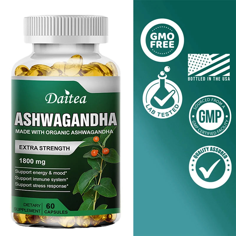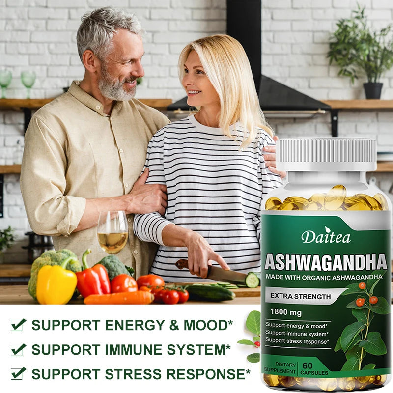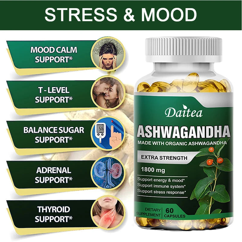 Made with organic ashwagandha to enhance energy, strength, stamina, help men and women relieve anxiety and stress (1-10bottle)