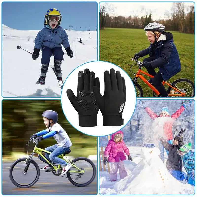 Non-Slip Kids Cycling Gloves Bicycle Full Finger Touch Screen Glove Fit Boy Girl And Youth Outdoor Activity