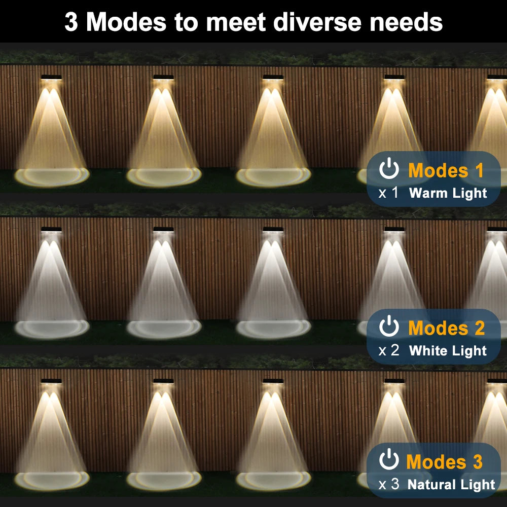 Solar Fence Lights Outdoor LED Lens Solar Wall Lights Waterproof Warm /White/Mixed Light 3 Modes Garden Backyard Patio Deck Pool
