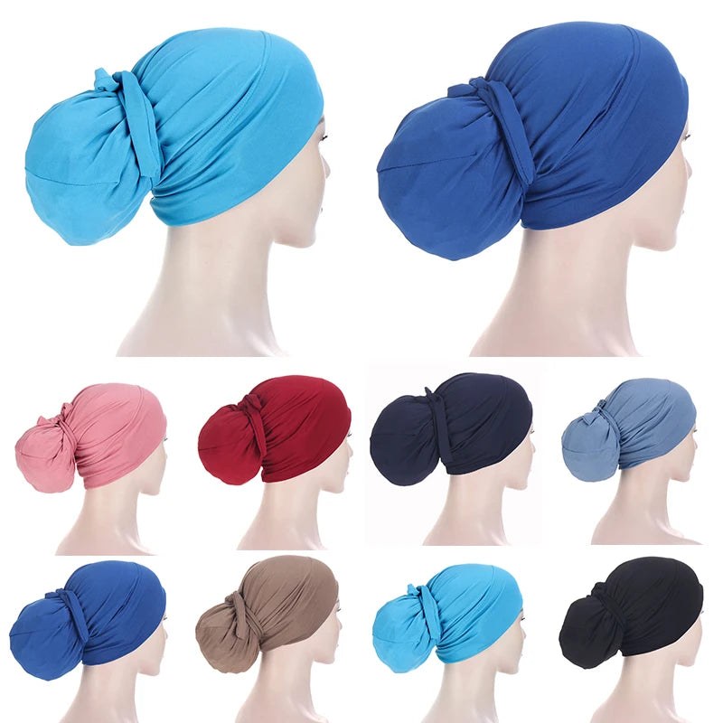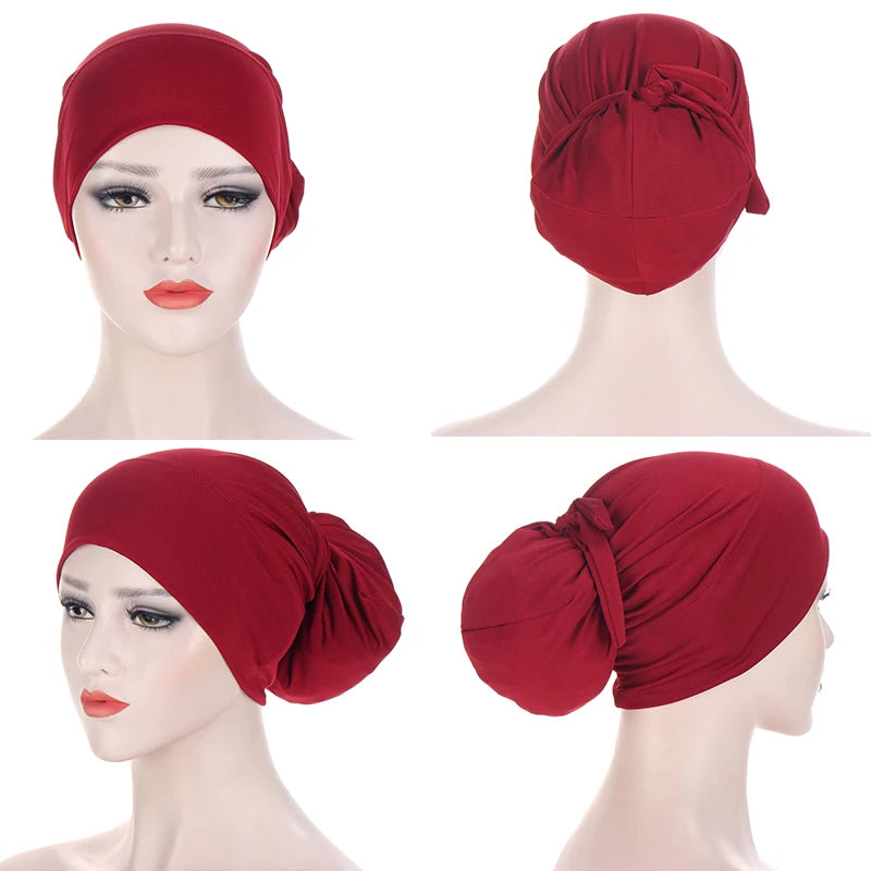 Solid Color Muslim Bandage Easy Cap Jersey Hijabs for Women Elastic Soft Headband Turban Hijab Chemo Hats Fashion Accessories
